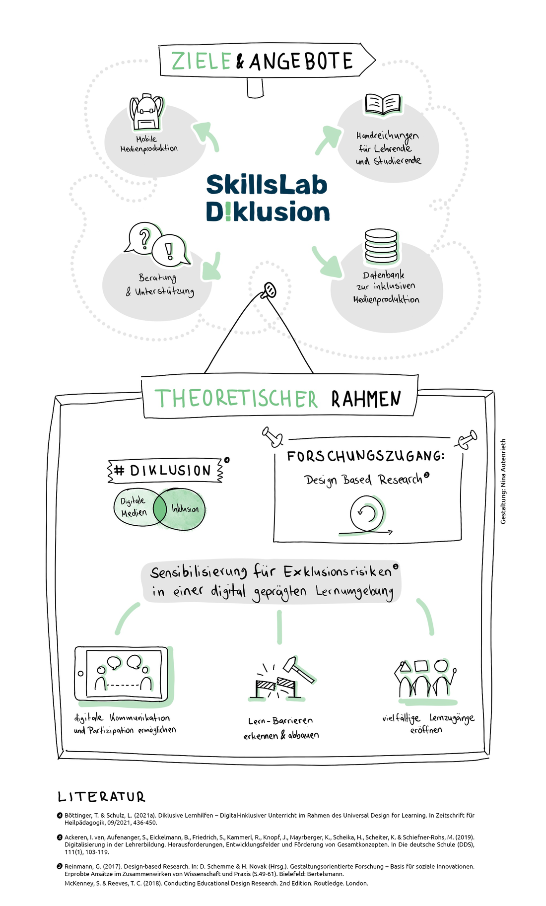 Das Arbeitspaket entwickelt den Diskurs über die konzeptionelle Verbindung der Themen Inklusion und digitale Medien weiter. Ziel ist, dafür zu sensibilisieren, wie wichtig es ist, Inklusionsmöglichkeiten, aber auch Exklusionsrisiken in einer digital geprägten Lernumgebung zu berücksichtigen. Konkret geht es darum, Lern-Barrieren zu erkennen und abzubauen, digitale Kommunikation und Partizipation zu ermöglichen sowie möglichst vielfältige Lernzugänge durch den Einsatz digitaler Medien zu eröffnen.